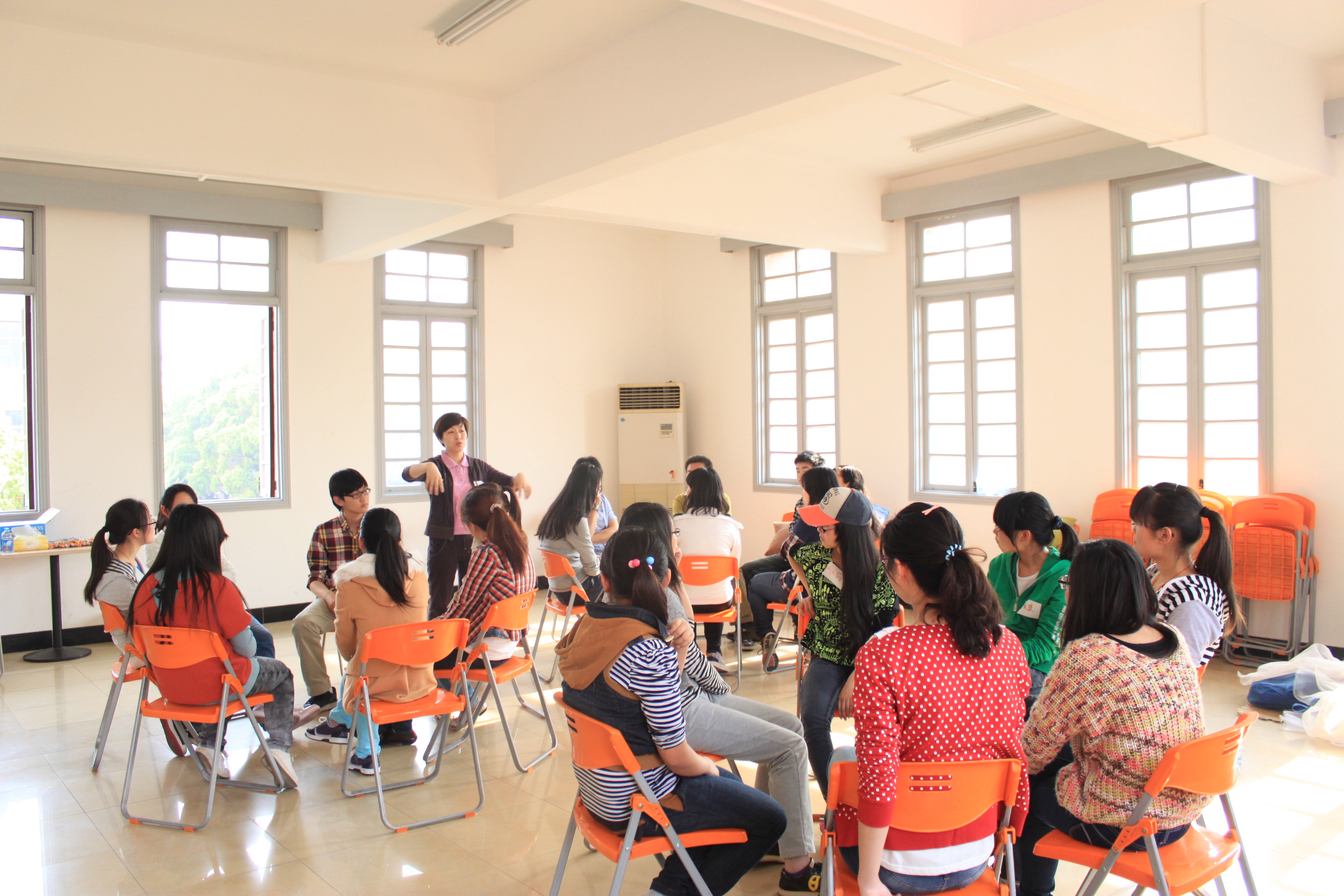 活动一开始,为建立同伴之间的信任,促进彼此交流。江娥老师首先带领我们进行了 “我的心情纱巾”游戏。活动中,成员选择最钟爱的纱巾颜色,来反映各自心情状态。这使得同伴之间得到了初步的认识与了解。接着,我们进行了抢座位的“大风吹”素质拓展游戏,这调动了现场气氛,成员们积极参与,彼此了解逐步加深。