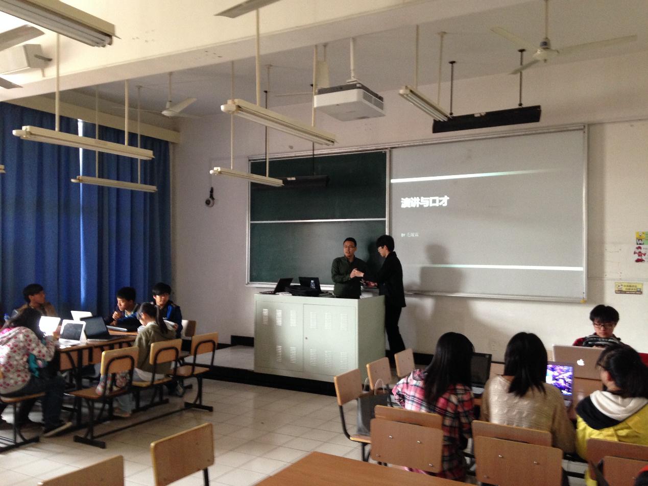 4月18日下午,2014年上半年学生会第三次骨干培训活动在4教103举行。本次培训以“演讲与口才——答辩展示”为主题,由邱俊晔副主席主持,管院研会主席担任培训老师,近70名来自学生会各部门的骨干参加了本次培训。