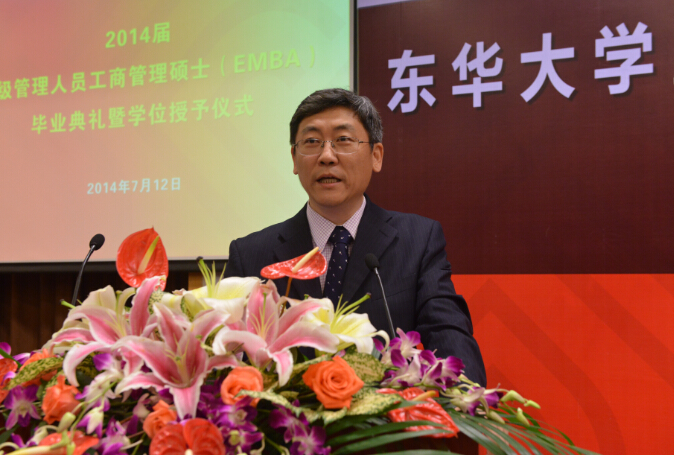 2014届EMBA毕业生代表马骏发言,他回首过往,经过几十年的工作积累和社会实践,再回到学校经过系统的学习充电,把原来的观念进行修整更新,把已有的知识进行充实,把过去的经验进行总结,把在现实中遇到的困难和问题进行分析、解剖,既更新了观念又充实了头脑。同时把EMBA课堂上学到的新观念、新知识、新方法运用到实际工作当中,解决遇到的困难和问题,让同学们终生受益。