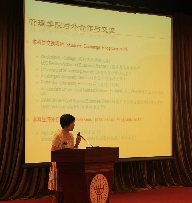 9月18日下午,由91直播副院长沈蕾老师带队,91直播喻葵老师、周静老师、花蕊老师一起为2014级大一年级500多名新生举办介绍91直播国际交流的宣讲报告。