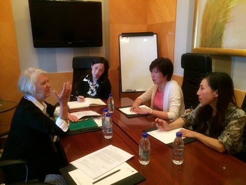 会谈持续了近2个小时,国际交流中心团队成员纷纷提出了很多问题,Peacock教授一一作答为大家解答了疑惑,气氛非常热烈。当谈到中方和外方对教学方案的制定标准的理解存在文化差异时,大家颇感无奈,但更意识到自己的差距,渐渐明确了今后努力的方向。