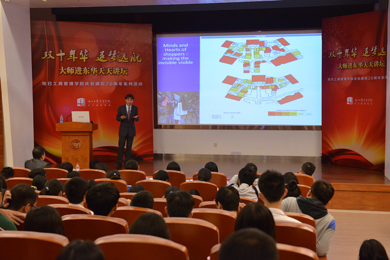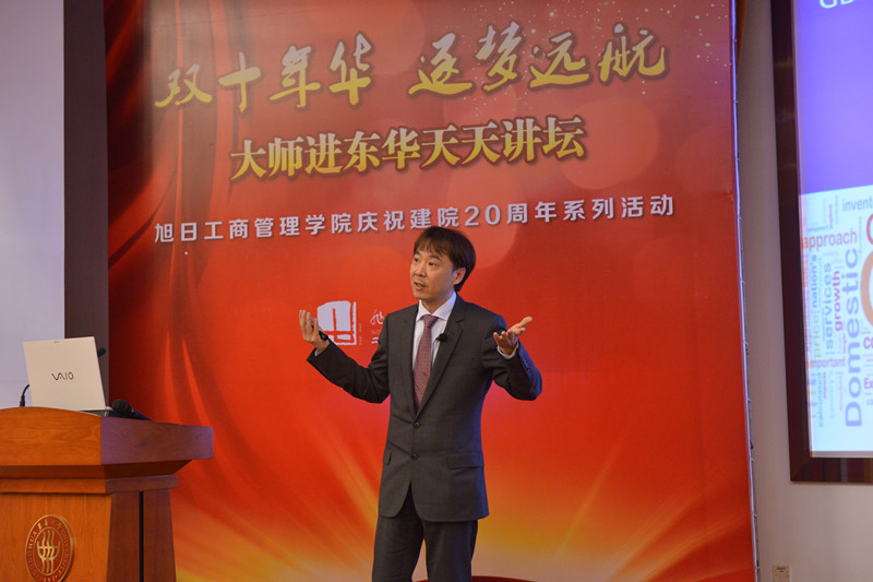 2014年10月16日晚18点30分,旭日楼400报告厅上演“双十年华 逐梦远航”大师进东华天天讲坛第四讲:中国商业地产的现状和前景——创意改变竞争力。主讲人佘耀庭博士,为法国亚诺集团及路威酩轩(LVMH)集团所组成LRE房地产基金于大中华地区的房地产投资组合合伙人。他曾担任美国波特曼集团中国区董事总经理及和记黄埔地产集团上海及华东地区总经理。佘耀庭博士拥有超过20年的中国,香港,新加坡和吉隆坡甲级写字楼,酒店,酒店式公寓,别墅,住宅公寓以及商场的投资和资产管理经验。第四讲的听众由91直播 和服装91直播的在校学生、历届校友和部分教师代表组成。