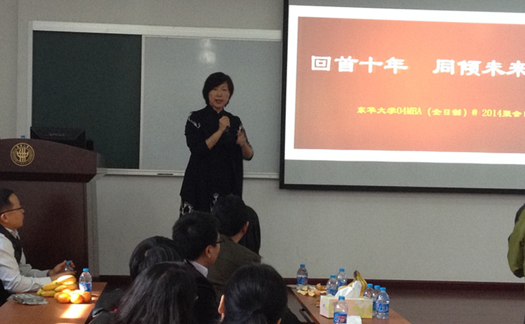 接下来,副院长沈蕾教授怀着喜悦的心情问候了各位同学,并对同学们寄予了厚望,希望大家都能为学校的发展献出自己的一份力,为学校、为学生提供更好的服务,同时也希望能搜集到更多的校友需求,更有针对性的为校友提供帮助。最后,她表示,东华会一直欢迎大家,会是大家永远的家。