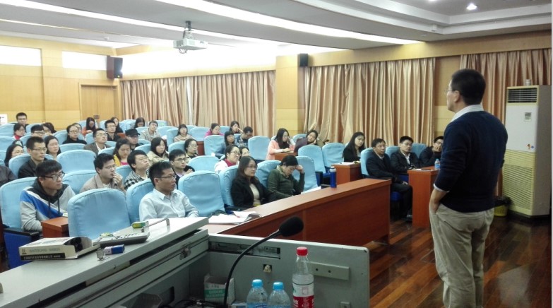 朱老师以其发表的一篇题为“Breaking the Iron Rice Bowl and Precautionary Savings: Evidence from Chinese State-Owned Enterprises Reform的论文开始了其高水平的学术报告,引起了在座同学们的兴趣。朱老师说,做研究的起点是从模拟开始的,学习这个领域权威学者的研究思路、方法和框架,运用到自己的研究中去,弄清楚结果是不是和国外的研究一致,这样一篇好文章就出来了。然后从实证的策略和实证的模型详细论述了如何才能做好高水平的计量实证研究,讲话幽默风趣,博得了同学们的阵阵掌声。