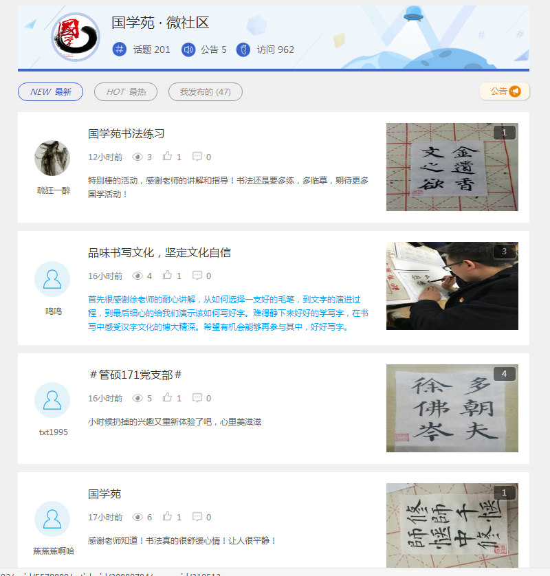 据悉国学苑是学院申请的校级易班特色项目,旨在:一、开辟院级传播中华优秀传统文化的在线平台,让更多的管院学子了解国学、学习国学,继承和发扬国学;二、提高学生的人文素养和精神情操,培养“通古博今、经天纬地”的经管精英。项目开办至今,发布话题帖201个,上传国学资料200多份,累计访问量962人次,线下活动举办十几场,累计接待学生研习活动近400人次(含本科生、研究生)。今后国学苑将购置更多学习书法技艺的书籍,以供同学们共同交流学习,同时开办了国画研习活动,不断丰富国学苑的线下活动,使更多的热爱中华优秀传统文化的学生参与进来,共同弘扬中华优秀传统文化。