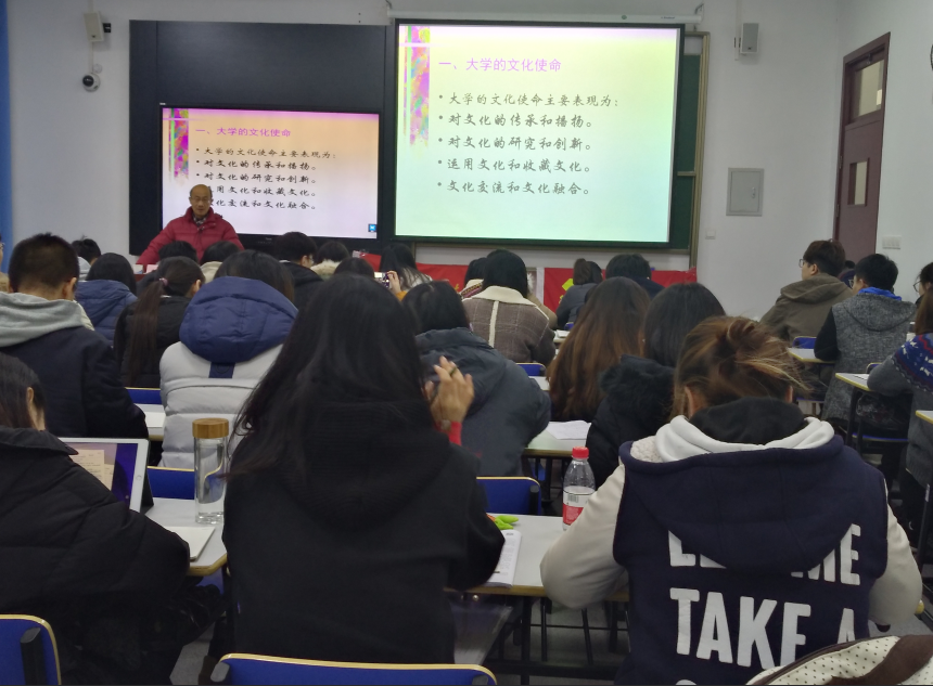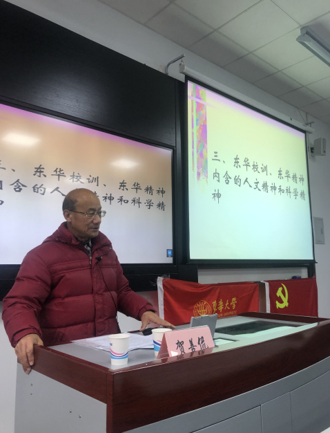 2018年12月11日,91直播 91直播 2018年预备党员培训班学员在一教210聆听了一场主题为“东华校训与东华精神”的党课。主讲人关工委讲师团成员贺善侃教授从东华的校训和东华精神出发,深入探究和剖析校训的文化起源和内涵,鼓励每一位东华人践行东华精神,做杰出东华人。贺教授生动又深刻的演讲,让每位学员对东华校训和精神有了更深的解读。