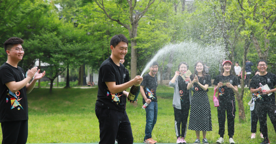 首日活动:首日活动,我们见到了带我们两天拓展的领队——雷教练。人如其名,雷教练给人的印象雷厉风行,严谨认真又不失一丝风趣。教练的一番话非常收益,我们在比赛中应保持风度,给予对手充分的尊重。鞠躬时,我们不学日本人,更不能学祭祀,要恭敬而不谦卑。在游戏开始前,我们火箭队完成了组建,并绘制了队旗,确定组长、组花与口号。火箭火箭,一飞冲天,正是大家对我们团队的期待与信心。
