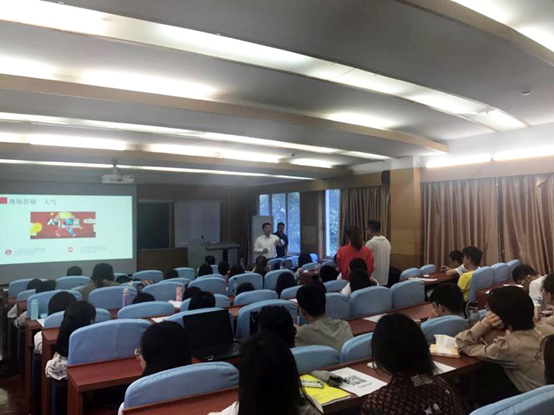 5月26日周日上午,暴雨如注,天气不好难挡同学参与热情,9点20分,在旭日楼211教室,“证券行业分析与券商职业前景介绍——暨《股东来了》走进91直播 ” 活动拉开帷幕。光大证券财富管理中心总经理王智首先给到场同学介绍证券行业现状、证券市场生态体系,包括投资规模、从业人数,还跟同学互动,送出两张彩票,让同学感受价格本质与心理估值的差距。他还给大家介绍了CFA考试的内容。