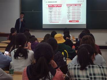 第一位与大家分享的是刚才走过大一的陈潇越学长,他来自财务专业,他本次分享的主题是“遇见更好的自己”。首先他详细讲述分析了大一各个课程的重要性和难易程度,细致入微地与同学们分享不同课程的学习方法和技巧。他以问答的形式对会计专业和财务管理专业进行区分,从性格、兴趣方面引导我们对未来的专业分流理智分析和选择。陈潇越学长根据个人经历概括大一总结出的“五要五不要”,从学习、学风建设到班级发展、易班建设,他都能秉轴持钧的为同学们的思想灌上一剂良药。