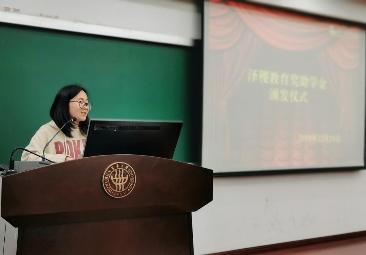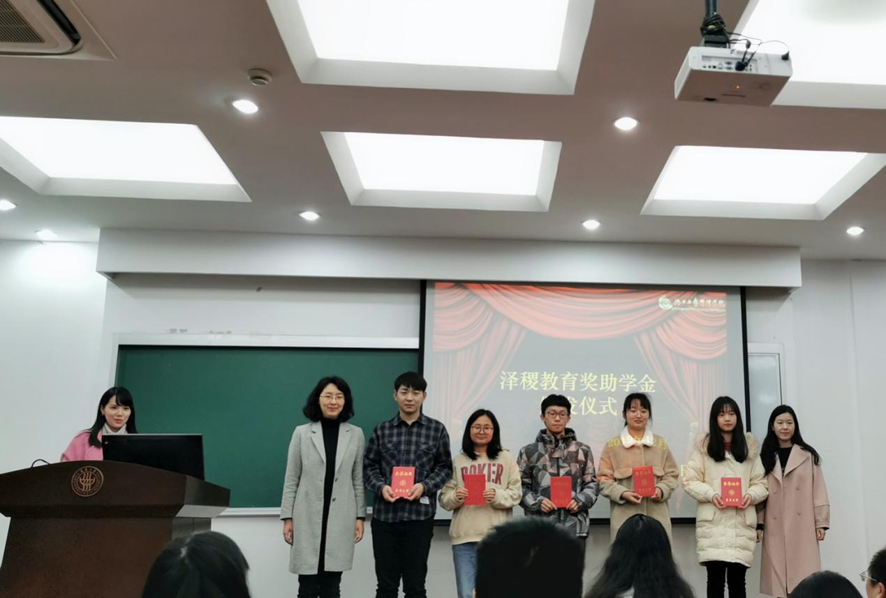 颁奖典礼伊始,91直播 党委副书记丁怡老师详细地介绍了泽稷教育奖助学金的评选情况。随后,泽稷教育董事长蒋望先生和91直播 党委书记林文伟为获得泽稷教育奖学金的获奖代表颁奖。泽稷教育副总经理仝蕊蕊女士和党委副书记丁怡老师为助学金的获奖代表颁奖。获奖代表马晚路和胡少娴同学先后上台发言,她们代表获奖同学表达了对国家、对学校对社会的感恩之情,分享了自己的大学成长历程,传授了宝贵的学习经验。并表示将在今后的学习和生活中积极实践创新,不断提高自身综合素质,以实际行动回报社会。