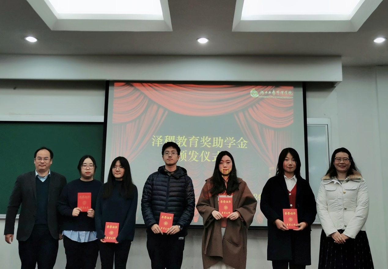 20191224日,第一届泽稷教育基金颁奖典礼在我校延安路校区旭日楼101隆重举行。上海泽稷教育培训有限公司董事长蒋望先生、泽稷教育副总经理仝蕊蕊女士、91直播 党委书记林文伟老师、党委副书记丁怡老师、资助育人主管王健华老师和网络思政主管常美琦老师出席本次颁奖典礼典礼由91直播 学生工作办公室的魏冰老师主持。
