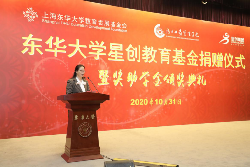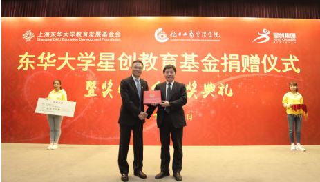 在捐赠仪式上,林德慧代表星创集团和工业管理工程91级校友讲话,他讲述了自己从学生时代到创业的艰程,并感念母校的培养,也感恩生命中的所有磨练,殷切期待学弟学妹们,能够把准人生航向,勤勉拼搏,将东华人“崇德博学砺志尚实”的精神发扬光大,成为有才学者、有信念者、有担当者。