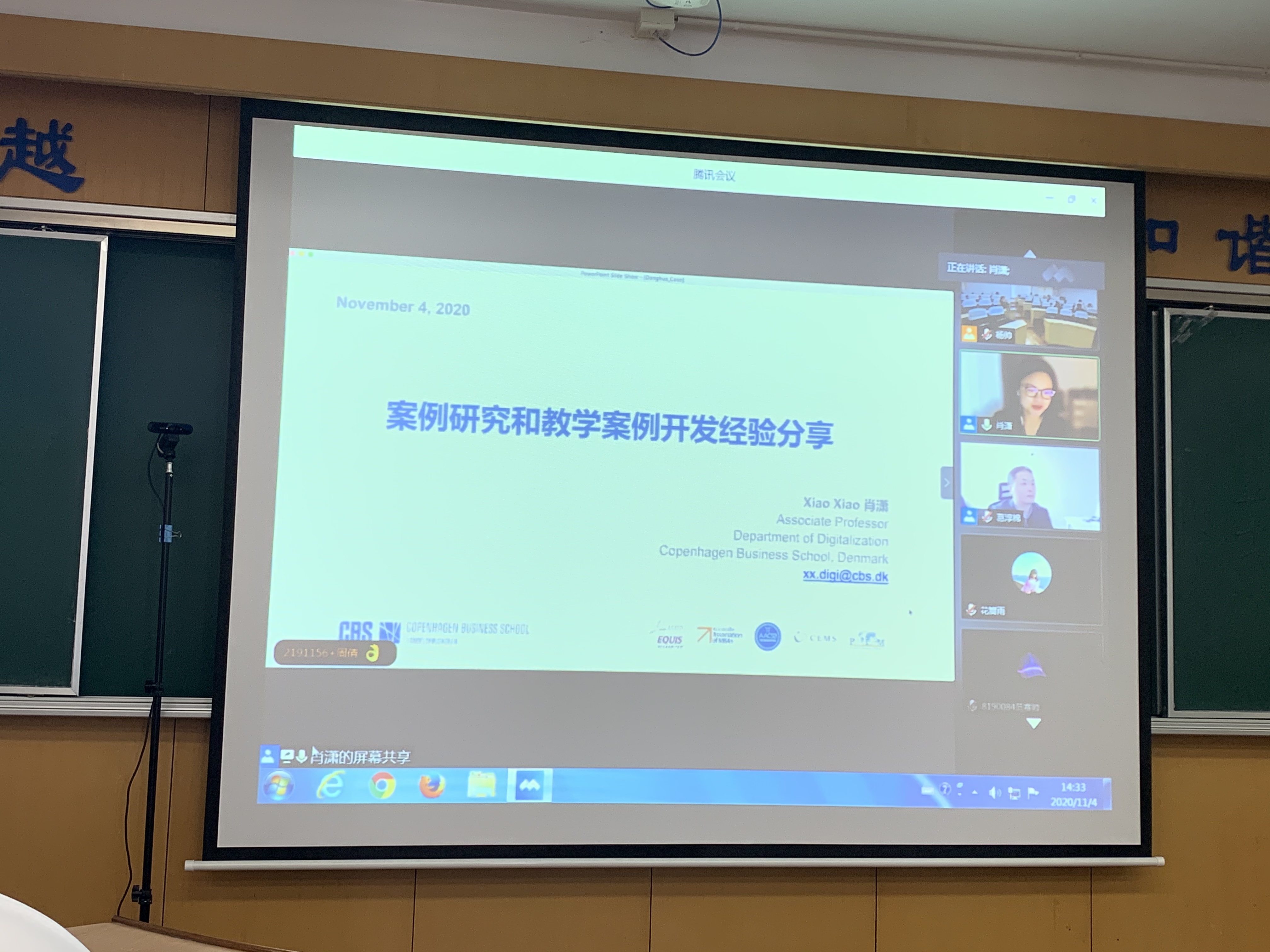 2020年11月4日下午2点半,91直播 分别邀请丹麦哥本哈根91直播 数字化系肖潇副教授以及华南理工大学工商91直播 葛淳棉教授为91直播 师生作了一场有关案例研究和案例教学的学术报告。会议线下场在旭日楼306召开,报告嘉宾在腾讯会议平台演讲,会议由杨帅副院长主持,91直播中青年教师及众多研究生出席了此次会议。