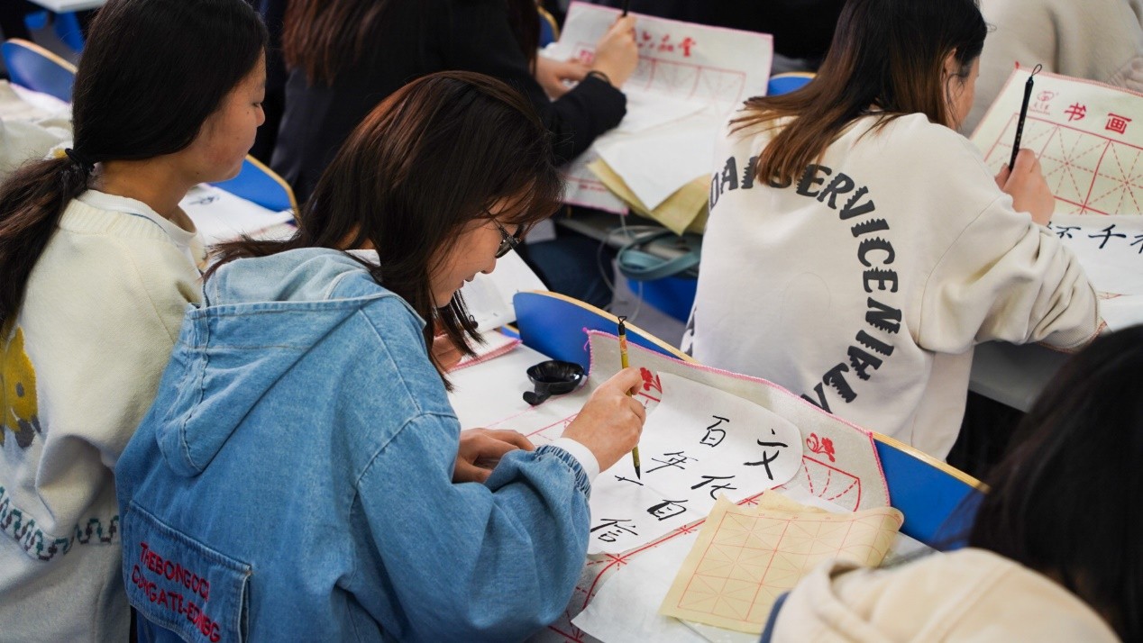 首先,徐老师带领大家学习领悟习近平总书记关于文化自信的系列讲话精神。习总书记指出,文化自信是一个国家、一个民族发展中更基本、更深沉、更持久的力量。中华优秀传统文化是中华民族的精神命脉,是涵养社会主义核心价值观的重要源泉,也是我们在世界文化激荡中站稳脚跟的坚实根基。增强文化自觉和文化自信,是坚定道路自信、理论自信、制度自信下的题中应有之义。坚定文化自信要求我们礼敬自豪地对待中华优秀传统文化,而书法正是中华民族传统文化的一项瑰宝。文化自信,书法先行。近些年一些重要外交场合,习总书记和夫人身体力行的带头传播书法文化,如G20峰会上积极推介中华书法艺术,为我们做了很好的示范作用。其后,徐老师介绍了中国书法字体演变史,历代著名书法作品等让大家更加全面了解书法艺术。