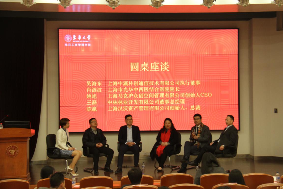 下半场圆桌座谈中,上海中瀛朴创通信技术有限公司执行董事吴海东、上海市光华中西医结合医院院长肖涟波、上海马克沪众创空间管理有限公司创始人兼CEO姚旭、中林林业开发有限公司董事总经理王磊、上海汉沃资产管理有限公司创始人兼总裁陈赢等5位嘉宾分别就疫情形势、行业现状、职业选择、资产配置、公益理念等话题展开讨论并与现场观众热烈互动,现场气氛活跃,妙语连珠。
