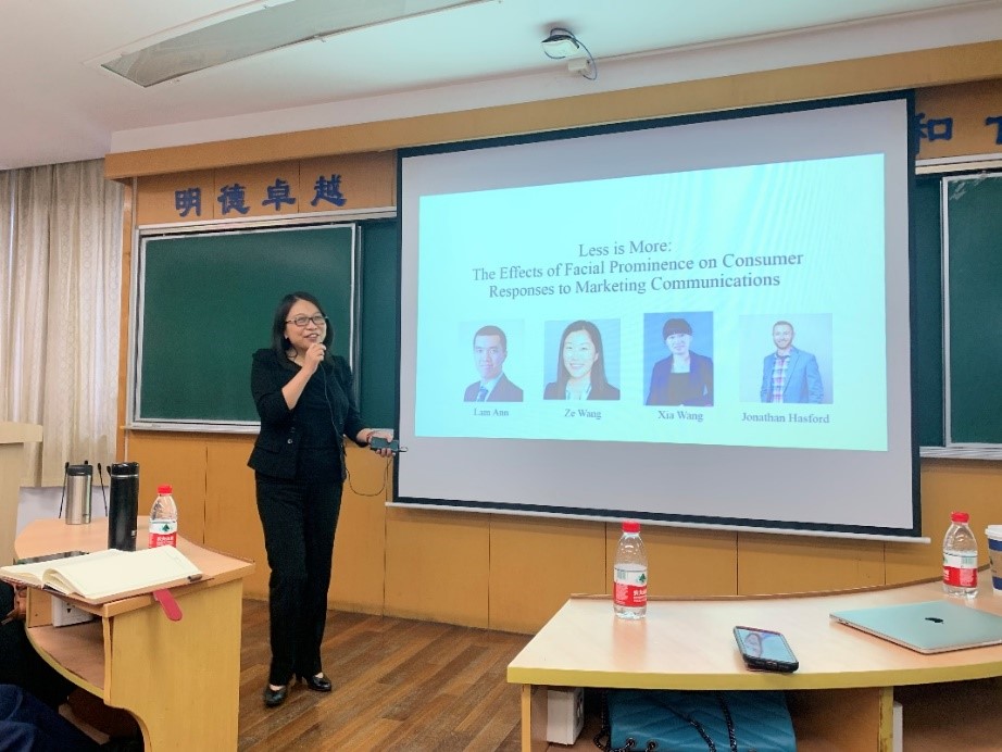 2021年10月21日(周四)上午10:00,美国爱荷华州立大学毛慧芳教授受邀来我院做以“Less is More: The Effects of Facial Prominence on Consumer Responses to Marketing Communications”为主题的学术讲座。本次报告会由副院长杨帅主持,91直播 师生在旭日楼306教室共同聆听了此次讲座。