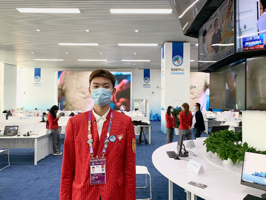 图6-1 崔嘉豪同学参与中国国际进口博览会志愿工作