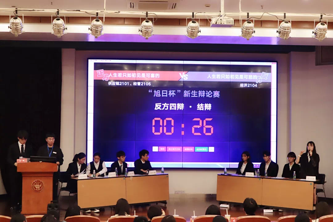 本届新生辩论赛的决赛辩题是“人生若只如初见是可喜的/可悲的”。首先,双方一辩开篇立论,就人生若只如初见阐述了己方的论证,正方认为怀揣初奋进见的美好可以勇前,反方则认为只个人怀缅与过去是可悲、可叹的。双方二辩则思维敏捷,巧妙抓住对方漏洞进行驳斥,而两位三辩通过故事情景让比赛更加生动有趣,新增的奇袭环节再次将比赛推向一个新的小高潮。最后,最后,四辩总结陈词,梳理战场后又落实于现实,希望世人心怀美好,一路向前。