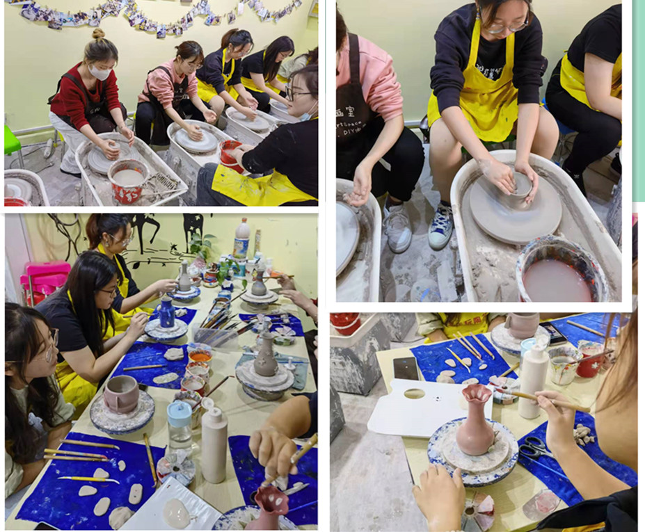 塑型、风干、装饰、上色、上釉、烧制,一件陶艺作品的诞生大多需要经历这几个工艺。在带教老师的讲解和指导下,同学们跃跃欲试,开始了上机拉坯、塑型、上色等环节的体验。整个活动其乐融融,同学们体验了陶瓷制作的不易,也提升了动手能力。19级仇宝恩说:这次的活动让我了解了中国传统艺术陶艺的制作,感受到了工匠精神,让精益求精铭刻在今后生活的方方面面当中。19级李沅蔚说:感谢学校提供体验机会以及带教老师的指导,希望有机会再参与这种体验中国文化的活动,丰富对中华文化的认识。20级刘懿萱说:这次的陶艺活动不仅带给我手工上的乐趣与成就,还让我与港台的同学更加紧密了起来。之前与她们的感觉就如同几块陶泥粘结在了一起,而如今已是经过了烈火的炙烤变得坚硬且永不分离。