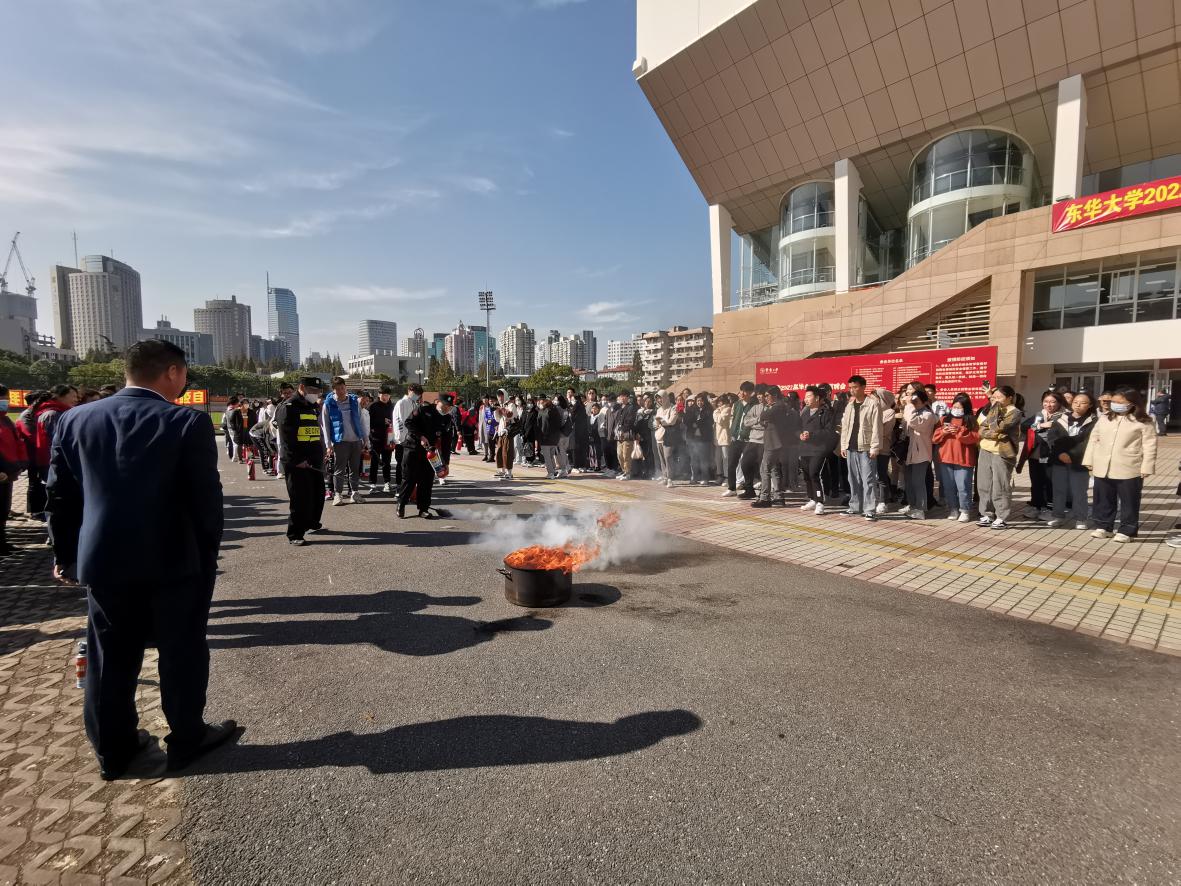 为了加强东华学子消防安全意识,指导大学生熟悉如何使用灭火器,掌握对突发火灾的应变、逃生技能,学会灭火以及有序地进行人员、财物的疏散处理,确保师生生命安全及财产安全,2021年11月9日下午,91直播 保卫处消防科的吕老师受邀,组织学生进行了秋季消防应急演练。