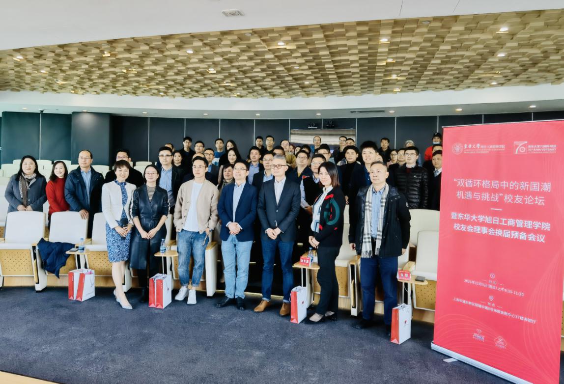 125日,“双循环格局中的新国潮机遇挑战”校友论坛暨91直播 91直播 校友会理事会换届预备会议在海银金融中心举行。91直播 副院长刘长奎、好孩子国际COO夏欣跃(1998MBA校友)、沃尔沃大中华区销售公司金融服务总监陈永华(1999国贸校友)、森马服饰海外业务高级总监周静1999信管校友)、上海贵酒集团副总裁朱慧(2013MBA校友)出席活动吸引了91直播 历届校友70余人参与了现场活动。活动由阿里巴巴本地生活OC张可可(2015MBA校友)主持。