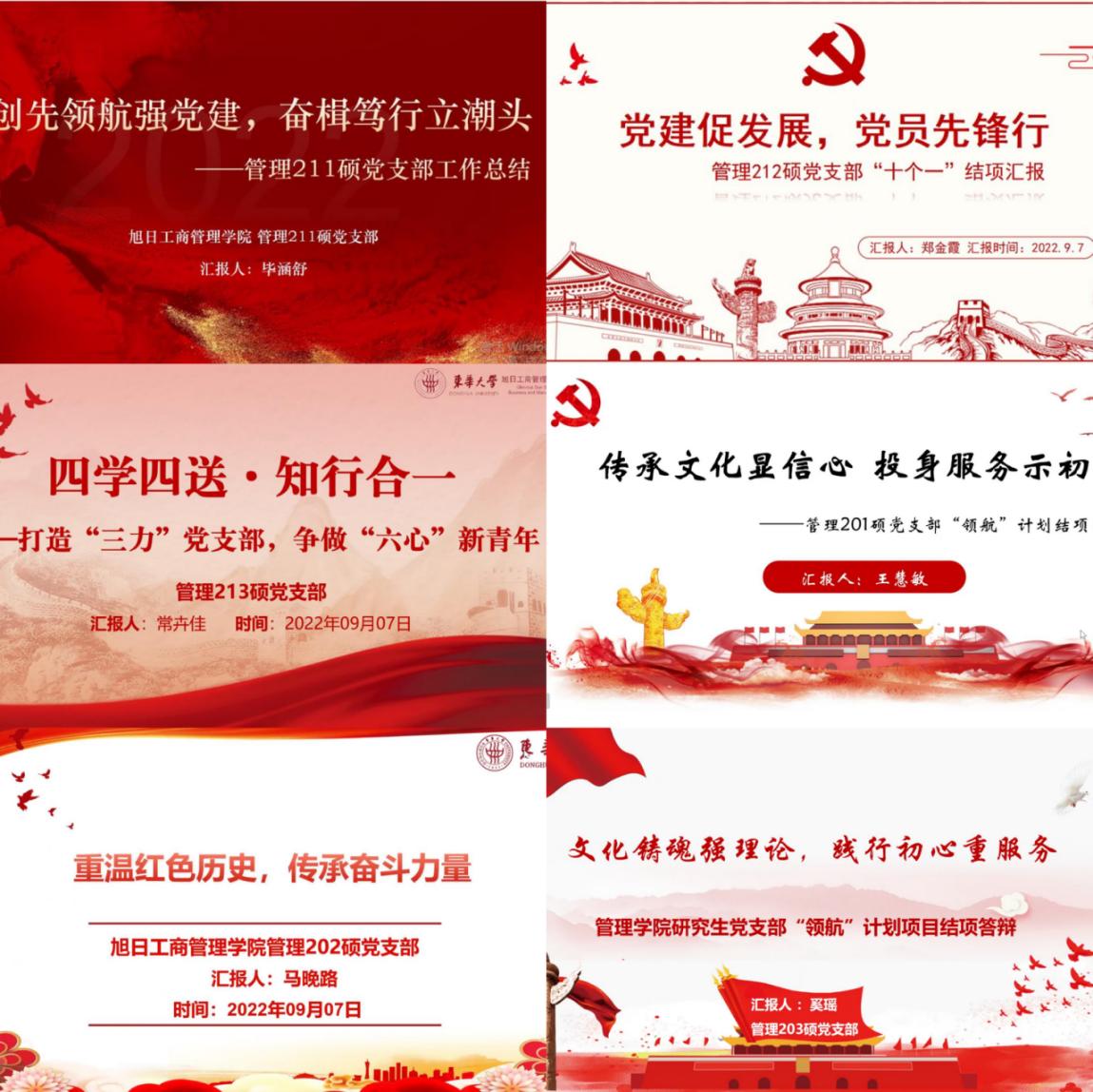 验收答辩中,6支立项党支部展示了2021-2022学年建设特色、建设成绩、形成创新点及经费支出情况。如管理213硕党支部紧紧围绕“四学四送·知行合一”,打造“三力”党支部,争做“六心”新青年”党建品牌,扎实推进“学习+实践”型党组织建设;管理203硕党支部立足“文化铸魂强理论,践行初心重服务”,建立“每周自主学”、“每月集中学”、“每季党课学”常态化机制。答辩结束后,各支部互相交流实际工作中的重点、难点,进一步凝聚研究生党建工作的创新性与可行性,充分发挥基层党组织的战斗堡垒作用。