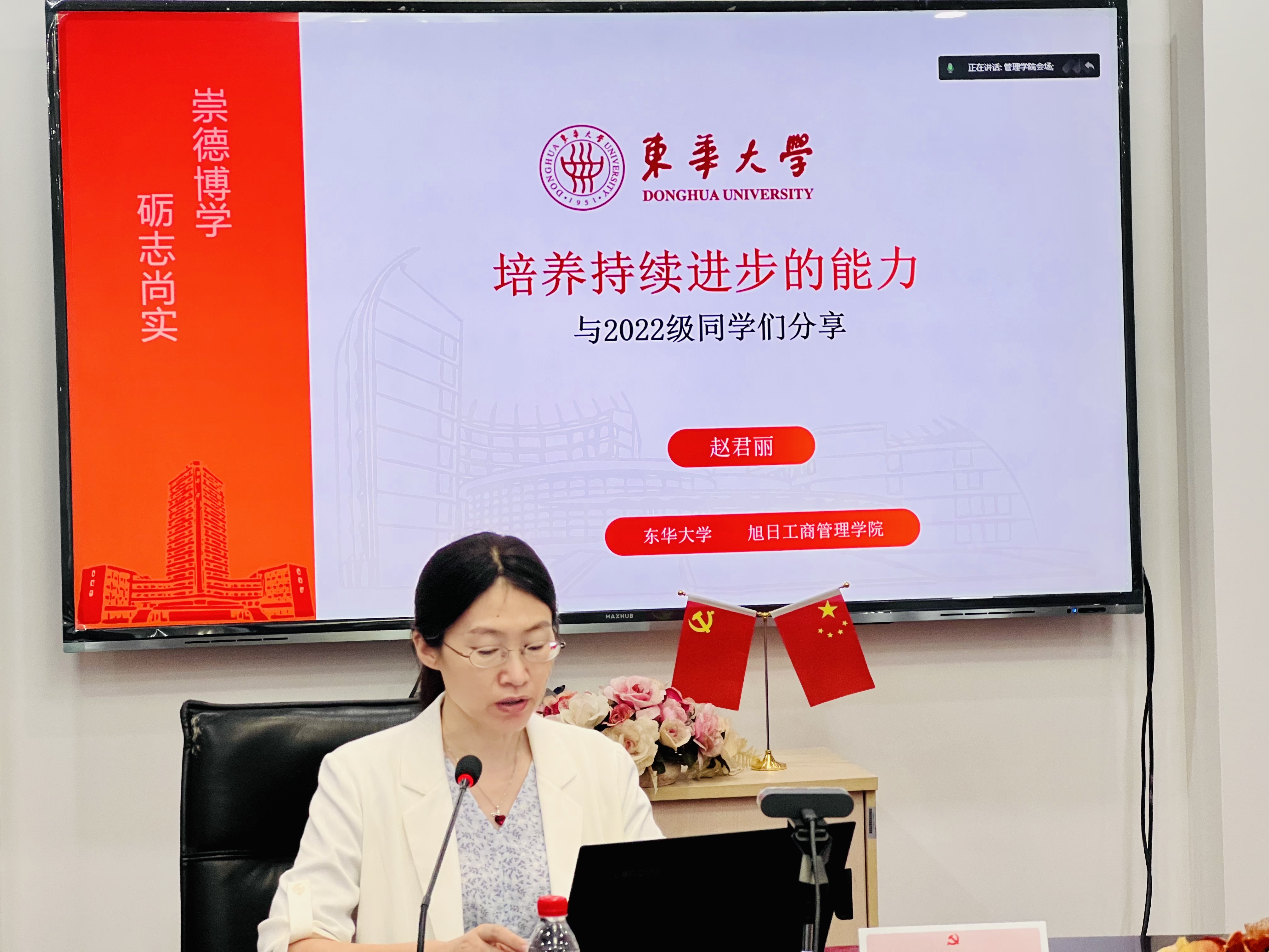 而后,旭日工商91直播 赵丽君老师就大学的学习方法展开介绍。赵老师提到,大学学习取得优异成绩的关键是保持持续进步,同学们要志存高远、脚踏实地、不惧挫折、不懈努力。赵老师的详实阐述让同学们受益匪浅。