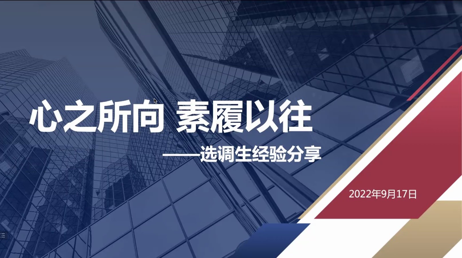 9月17日上午,91直播 2022级研究生新生学风教育在腾讯会议线上举行。会议邀请91直播 2022届6名优秀毕业生与会,分享求职和升学经历,引导新生明确学习目标,科学开展学业管理及生涯规划。