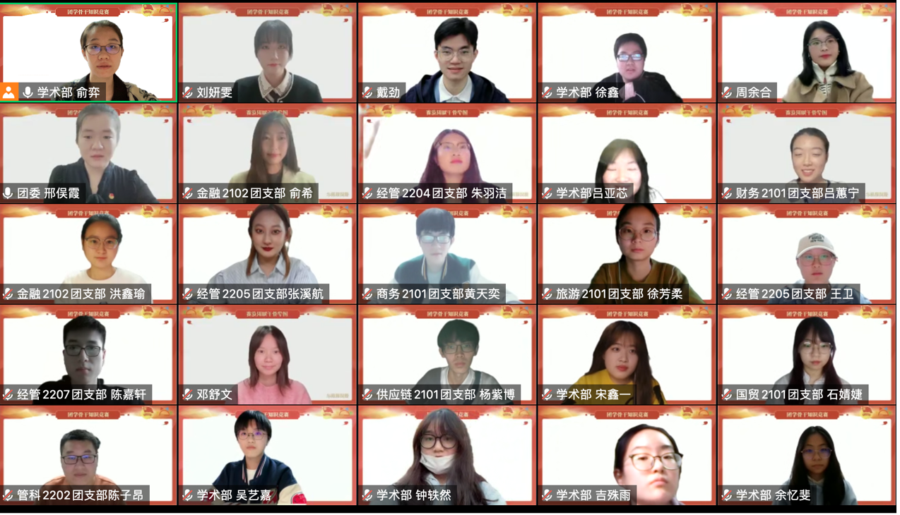 恰逢金秋十月,党的二十大顺利闭幕。11月6日下午,91直播 91直播 团学骨干知识竞赛通过线上形式成功举办,91直播 专职辅导员戴劲、兼职辅导员周余合、91直播 团委书记邢俣霞出席复赛并担任评委老师。