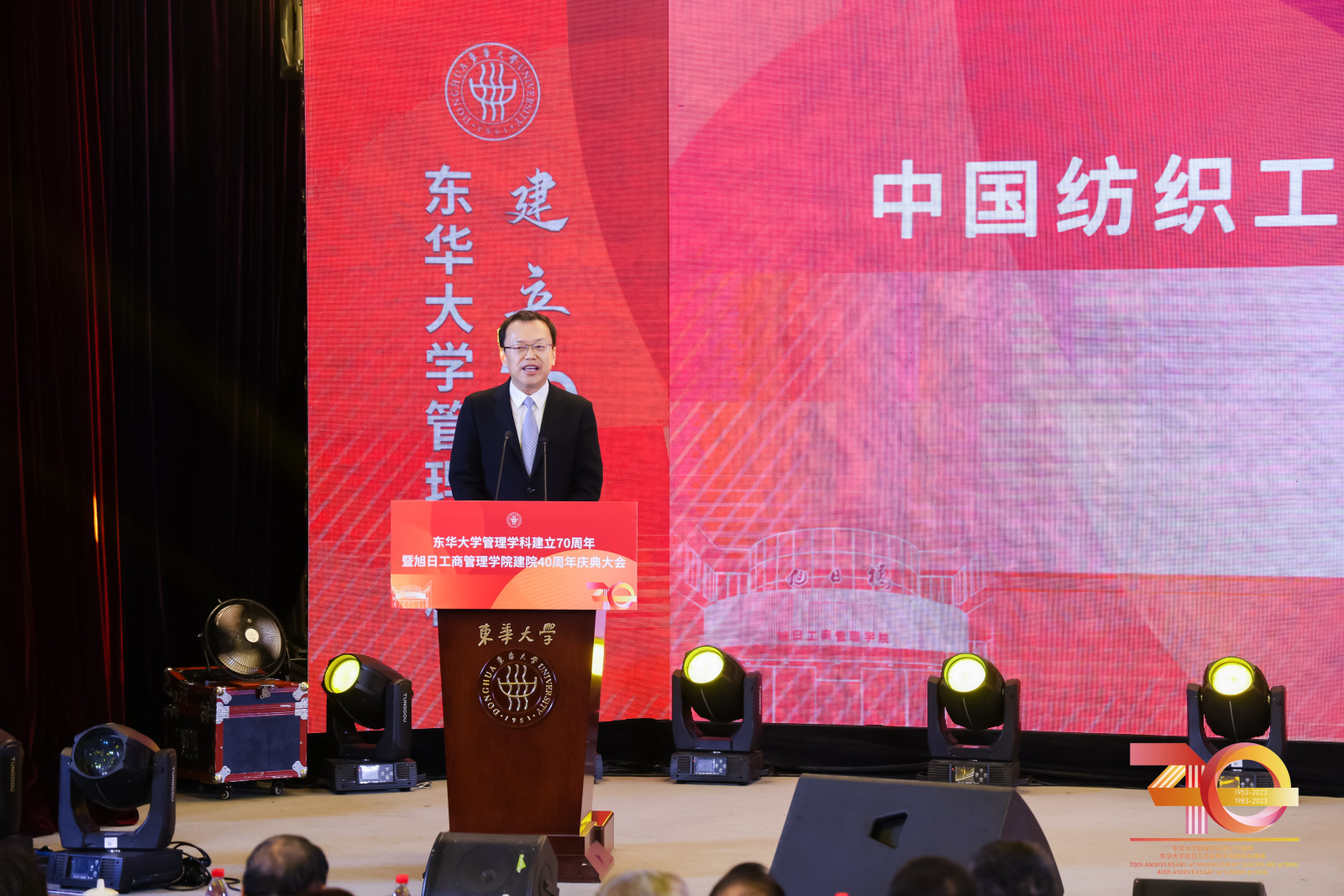 中国纺织工业联合会副会长李陵申,上海市人民政府参事顾晓敏,东方国际集团党委副书记、总裁季胜君,旭日集团副董事长、总经理杨勋,浙江大学文科资深教授、AMBA中国代表王重鸣等校外嘉宾,以及我校党委书记刘承功、校长俞建勇,副书记李成龙,副校长陈革、阎林平,原校领导徐明稚、吴楚武、浦解明、刘春红等出席大会。学校相关部门91直播和兄弟高校相关91直播负责人,91直播 历任领导班子、退休教师、师生和校友代表与会。大会由阎林平主持。