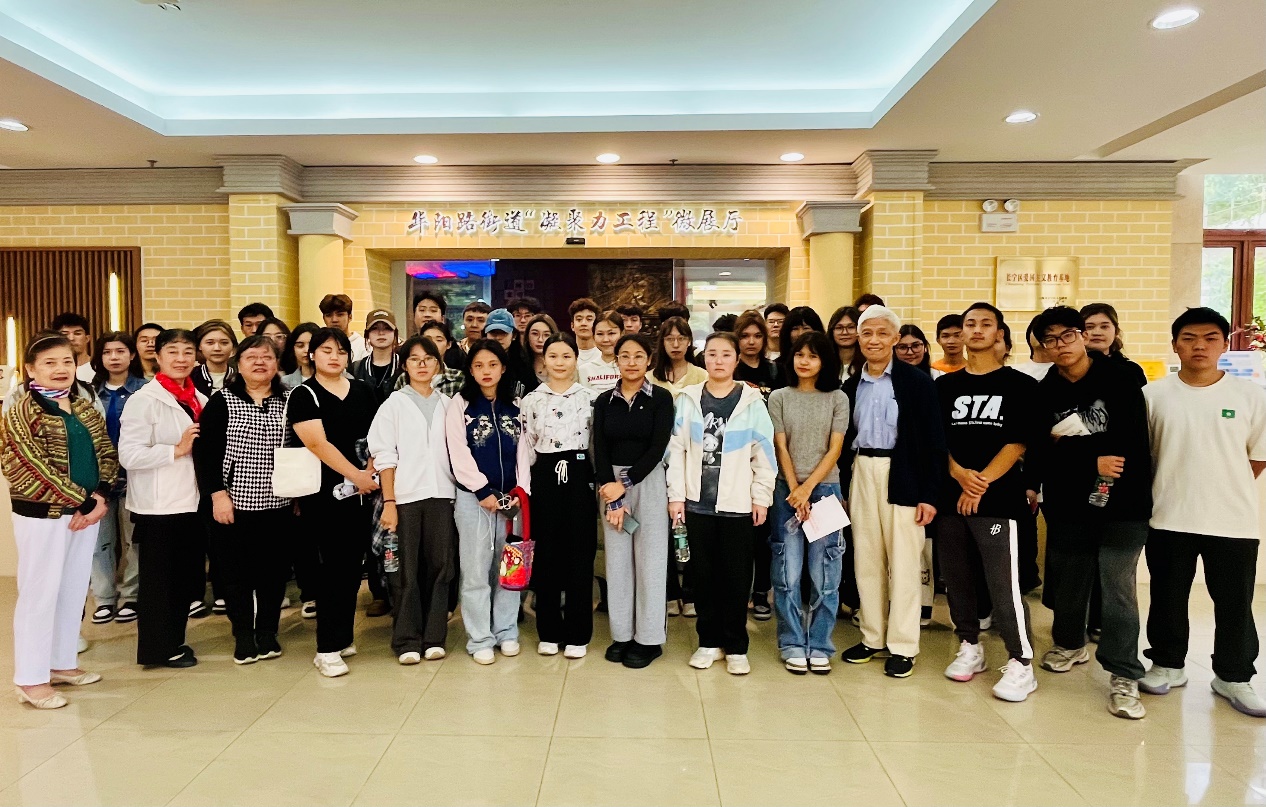 活动伊始,师生们在华阳路街道文化中心受到了街道干部和居民的热情欢迎。师生居民共同参观了街道的党建工作,通过实地考察,了解91直播 和华阳路街道在凝聚力工程背景下共同传承和发展的“家在华阳”民族团结品牌30年的历史和共建民族团结进步教育基地的创新做法与显著成效。91直播 辅导员努尔顿勉励同学们,接过“家在华阳”的接力棒,争做民族团结进步的“模范生”。