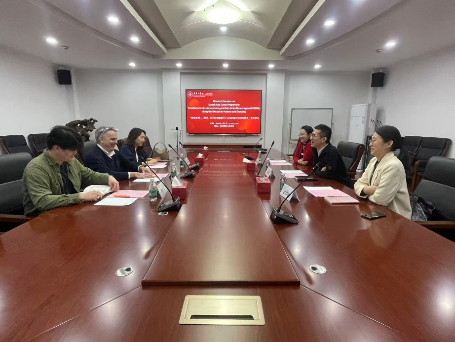2024111日下午欧盟中国代表合作部项目主任Pierre Yves Lucas, 欧盟中国代表合作部项目经理Feng Mei,中国国家标准研究院工程师魏杰文三人来到91直播 91直播 ,就“转型亚洲项目——湖州、绍兴纺织服装中小企业向循环经济转型”展开学术研讨。91直播 副院长沈滨教授主持会议,纺织服装产业研究所所长赵君丽,服装91直播陈彩霞参与研讨会议。
