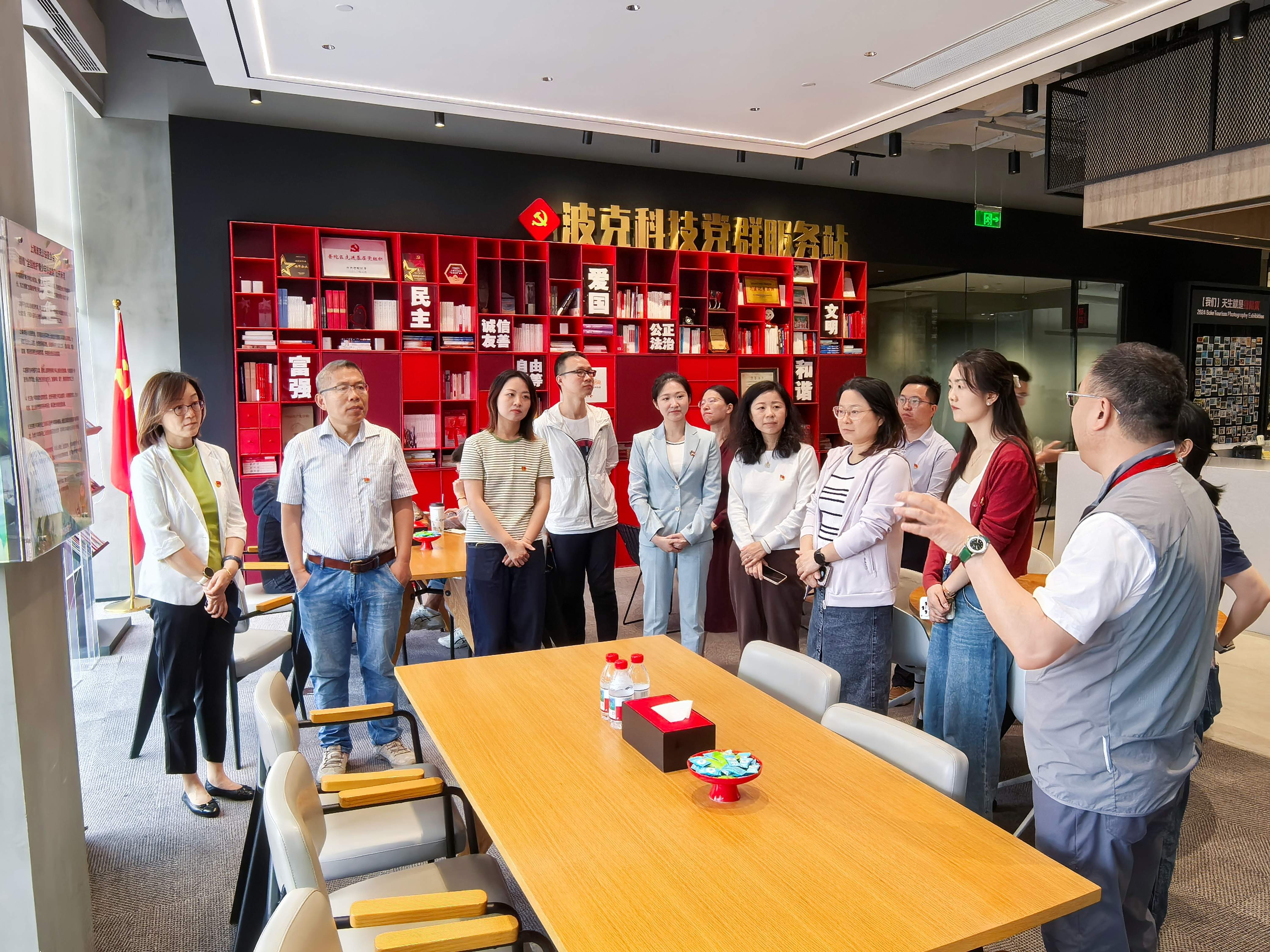 波克城市党委书记、副总裁刘忠生分享了全国劳动模范工作室的创建历程,生动诠释了 “党建与业务同频共振” 的发展逻辑。作为“上海市互联网企业党建工作示范点”,波克城市在探索党建引领互联网产业发展做了许多有益的尝试。91直播党员代表实地参观了“游戏 + 科普”“游戏 + 医疗” 等特色党建与业务融合场景,深入了解企业强化党建引领,在服务行业发展大局中锚定基层党建发力点,探索出一条党建引领互联网产业发展的实践经验。