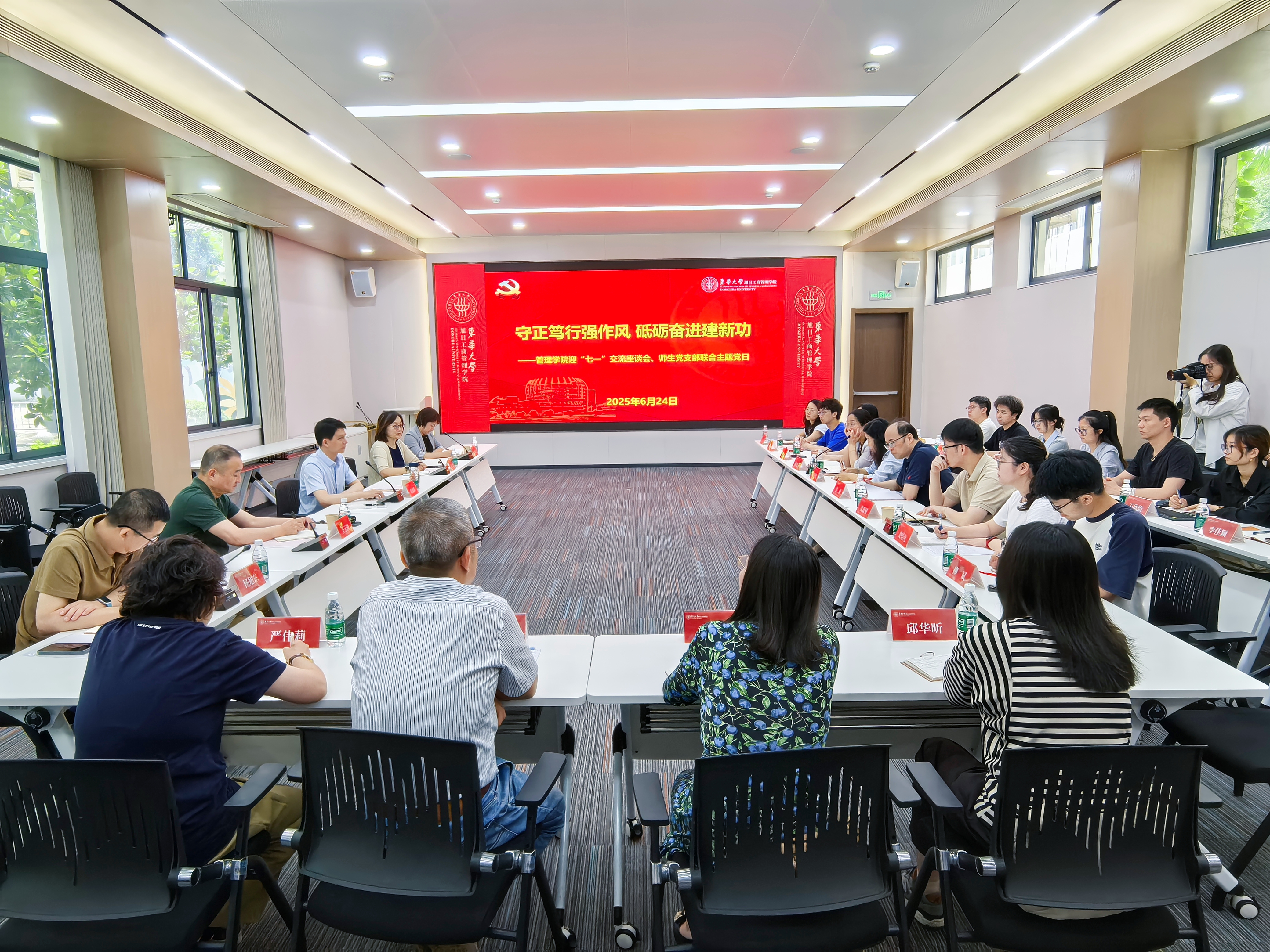 项延训对本次主题党日及交流座谈活动表示肯定,并就如何深入贯彻中央八项规定精神学习教育,推动高质量发展提出希望和要求。他指出,要提高站位,胸怀大局,把个人奋斗融入学校事业发展全局,持续强化理论武装,切实发挥战斗堡垒作用,将党的先进理论和纪律要求转化为推动学校事业高质量发展的强大动能;要聚焦问题导向,务求实效,以优良作风赋能高质量发展,一体推进“学、查、改”,紧密对接《教育强国建设规划纲要(2024—2035年)》和国家战略需求,全力推动《91直播 学科专业优化调整三年行动计划(2025—2027年)》在管院落地见效;要勇担使命、攻坚克难,在建设“奋进东华”中展现管院作为,勇当改革攻坚的排头兵,锚定构建“管理+数智化”为核心的学科体系,敢于打破学科壁垒,通过扎实有效的工作,将学校第十一次党代会的蓝图在91直播 转化为生动的实践,在服务国家战略需求和上海经济社会发展中贡献更多东华管院智慧。