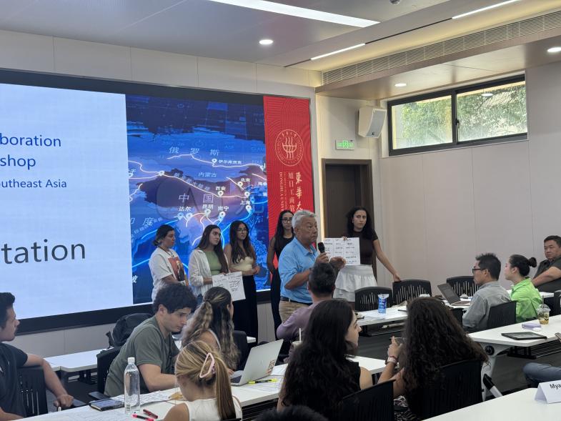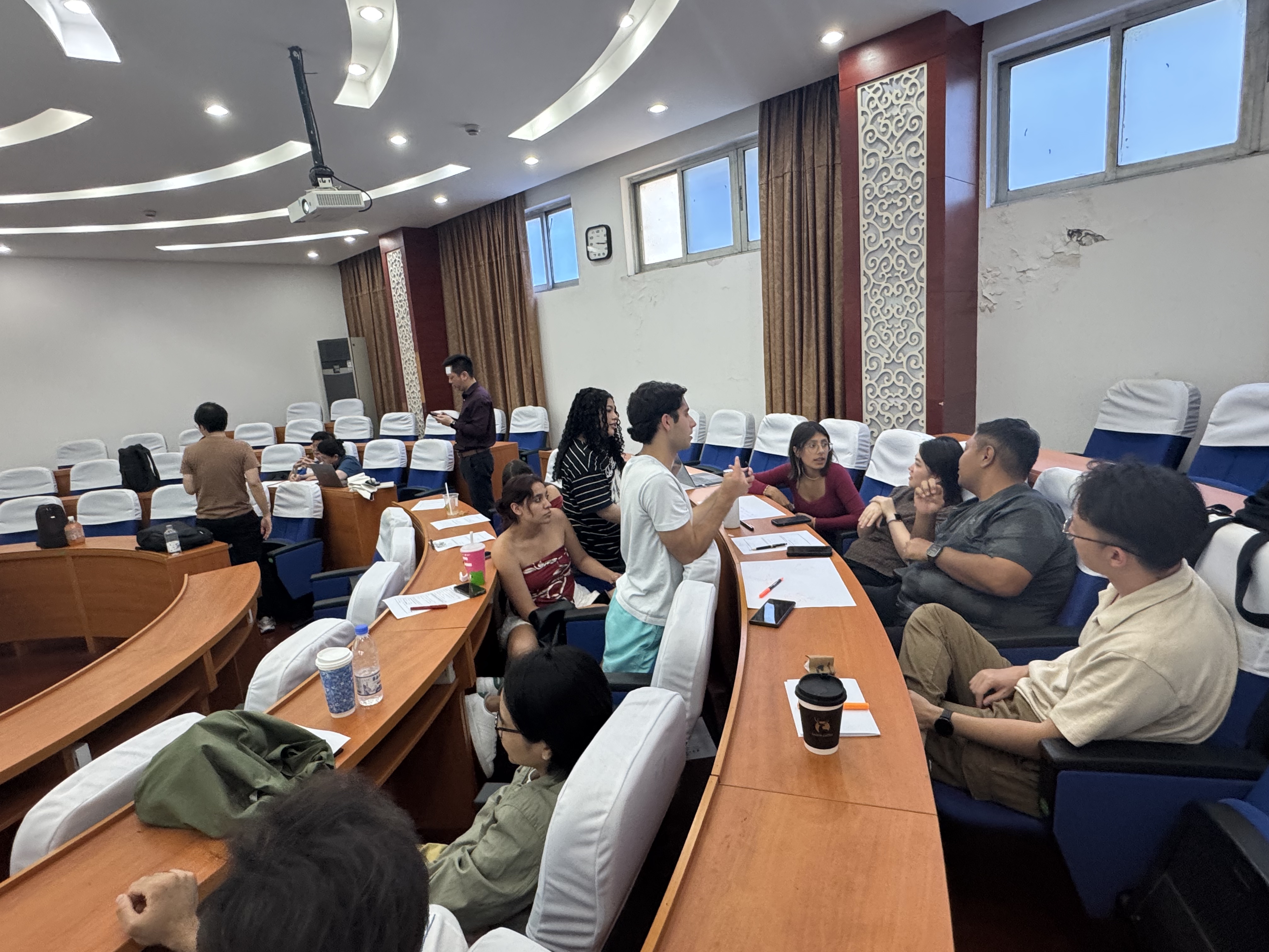 为强化交流实效,活动采用 “全员参与+分组研讨” 模式:学员与多国代表混合组成小组,针对 “拉美和东南亚产品营销策略”“AI在产业中的应用”“拉美和东南亚地区的供应链” 等细分话题展开讨论和对话,并通过小组展示呈现合作构想。现场互动频繁,既有行业智慧的碰撞,更有商业资源的对接,为学员们搭建了拓展国际人脉、发掘就业机遇的直接通道。