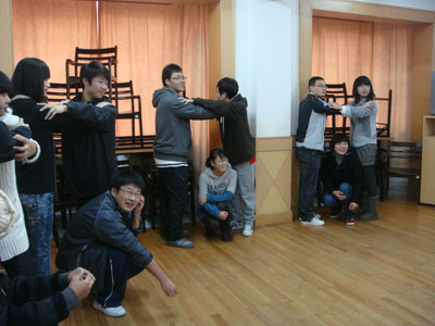第二个环节,大树与松鼠中考验同学们合作意识、发现机遇的能力和主动与他人合作的态度。同学们在这个环节中学到的是要时刻的观察周围的形式,并且快速的做出判断。失败的同学被罚做表演。现场的气氛顿时达到了一个高潮。同学们刚开始的紧张顿时烟消云散。接着,同学们对前面进行的环节进行了交流和分享,同学们积极发表意见,表达了自己的感想和体会。第三个环节是排列生日,要求同学们在不说话的情况下按照生日排列围成一圈。环节进行中,两个组自然产生出来一个组织者,在组织者的领导下两个组都很快地完成了任务。这个环节让同学们意识到,组织和计划的重要性,一项活动的开展要了解相应的规则,迅速反应制定可行的计划,同时需要高效的组织,适当的引导才可以顺利完成。