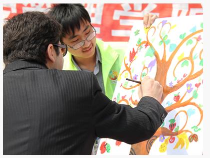 志愿者管理中心举行了以“水木年华”为主题的校园环保活动。 此次“水木年华”环保活动为期两天。活动共由五部分组成,分别为:“水之循环”——以色列水利模型介绍、“树之起点”——树苗培育、“纸叶之聚”——废纸换物、“新叶新添”——环保涂鸦、“变废为宝”——废纸模型展示。活动形式虽各有不同,却环环相扣。活动吸引了大批老师、同学驻足观摩并积极参与。 “纸叶之聚”意在以A4废纸交换书签。值得一提的是,活动所用书签均是由策划人员们用掉落在地的树叶制成的。这些书签既精美又恰到好处地呼应了环保主题。活动开始不久,桌子上便已堆起一叠叠废纸,同学们的环保积极性可见一斑。“新叶新添”环保涂鸦活动中,同学们纷纷执起画笔在光秃秃的树干中画下了自己心目中最美的树叶形象。经过大家共同的绘制,原本萧瑟的枝干顿时展现出了勃勃生气。 毫无疑问,活动中最吸引大众眼球的是两个由91直播