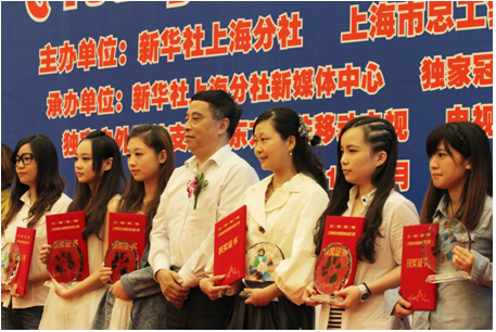 获奖短片“诚信旺吉祥” 短片链接: 交通大学电影电视系主任李亦中教授(右七)为王琳校友(右六)颁奖