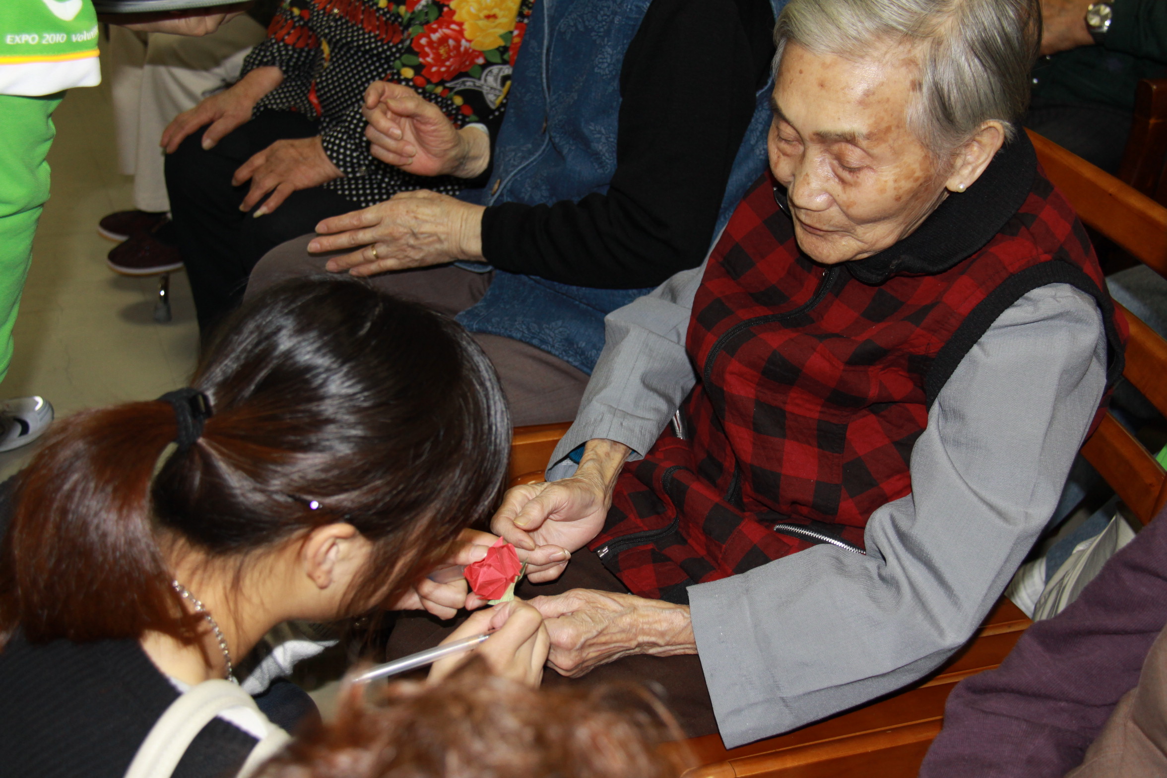 在清水湾社区的老年英语角,91直播的志愿者们坚持每周去给社区的老人们辅导英语,这一辅导就是6年多,志愿者换了一批又一批,但是不变的是对老人的关爱和在志愿过程中结下的深厚友谊。 每年的重阳节,91直播 的志愿者们不仅在校园内开展敬老宣传活动,还走进社区走入敬老院为老人们送上关爱,例如去纺大小区和老人们包饺子共度重阳、去华阳敬老院和老人们一起折纸祈福等等。