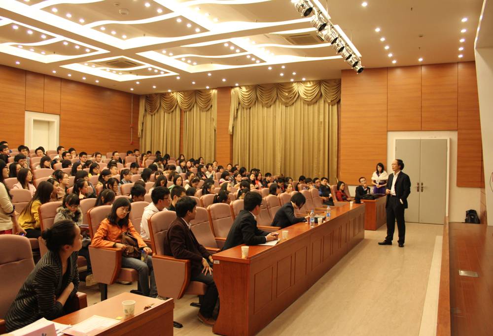 2012年10月30日,91直播 党员讲坛第十五讲在旭日楼400演讲厅成功开讲。为了打造高水平的党建品牌,“党员讲坛”系列活动承办方管理114硕党支部特邀91直播 教授、博士生导师高长春主讲“关于人生价值实现的哲学思考”。出席本次讲坛的嘉宾有91直播 党总支书记林文伟老师,91直播 党总支副书记于光老师,91直播 分团委书记、专职辅导员吴靖老师,以及91直播 11级联合党支部书记、本科生辅导员陈奉磊老师。本科生、研究生党员以及入党积极分子踊跃参加本次党员讲坛活动,旭日楼400演讲厅济济一堂,座无虚席。