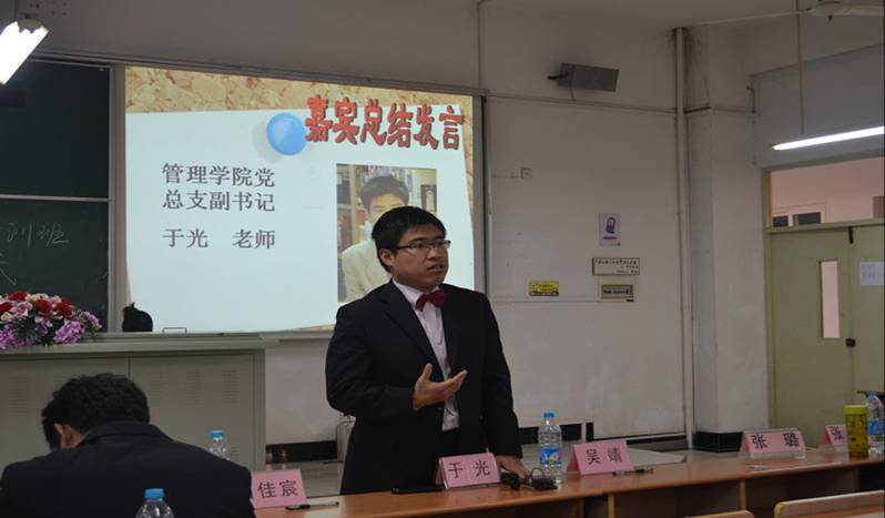 万辩不离其宗,纵横不出方圆。经过激烈的初赛与复赛之后,11月6日下午,由91直播 研会主办、秘书组承办的第五届骨干培训班辩论赛决赛暨闭幕式在4教201圆满落幕。91直播 党总支副书记于光老师,91直播 分团委书记吴靖老师出席了本次辩论赛并担任大赛评委和颁奖嘉宾。研会骨干班成员及各班班长及党支书代表参加了此次闭幕式。