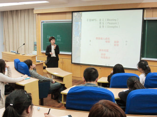 幸福是什么?对于这个问题的回答,每个人的答案可能都不尽相同。江娥老师首先给大家播放了一段视频,里面包括了范伟眼中的幸福还有许多社会名人理解的幸福。接下来,所有学员被分成了5个组,要求大家一起讨论一下“幸福是什么?”,最后由每组的代表发言。第一组代表王佩表示,幸福就是心中有目标,并且能够通过自己的努力将其实现;第二组的代表则表示只要我爱的人和爱我的人一切安好即是幸福;第三组的代表认为有期待、有盼头、能够给他人带去欢乐就是幸福;第四组的代表表示幸福就在生活中的每个细节里;最后一组认为满足他人的需要和自己的需要被满足就是一种幸福。显然每个人都有自己理解的幸福。那么幸福在哪里呢? 幸福在哪里?江老师为我们介绍了两种常见的幸福的假象:幸福=财富?幸福=快乐?从美国霍华德金森的研究可以看出,并不是财富多就表示幸福更多。江老师更是指出一切依靠物质财富的幸福一旦离开了财富,幸福感都会消失,只有由内心生出的幸福才会持久。那么幸福是否就等于快乐呢?江老师向我们介绍了泰勒.本-沙哈尔的《幸福的方法》中的四种类型的人:奔波忙碌型、幸福主义型、虚无主义型、享乐主义型。并且对每种类型的人做了详细的介绍,中间也介绍了习得性无助等著名心理实验的过程,让大家认真思考了自己是属于哪一种类型的人,同时也教会了我们如何在这四种类型中过度,让自己过得更幸福。 如何让自己过得更幸福?江老师指出我们可以通过快乐学习、开心工作来使自己更幸福。快乐学习,让我们从溺水模式转换到沉浸模式,不是因为追求好的成绩而被动学习,痛苦学习,而是享受学习过程的快乐和探索知识的乐趣。对待工作一般有三种态度:任务、事业、使命感。明显的,如果只是把工作当成任务则这份工作将是无趣的,江老师带领我们寻找了工作的MPS(Meaning Pleasure Strength),若一份工作在这三方面重复的部分越多,那么这分工作将会越适合你,越是你想要的。关于使命感,江老师则是用了一句话来概括:对工作的认可比工作本身重要。 你有多幸福?江老师让我们在场每位学员拿出了一张纸画出5颗空白的星星,然后根据自己的幸福程度将星星涂黑,并且每颗星星对应一个方面,最后大家进行了交流,发现彼此幸福的点都不一样的。有的同学已经觉得自己非常幸福,画上了5颗星;有的人则对现状不满意,只画上了2颗星。在讲座即将结束的时候,江老师还向大家推荐了几本书:《遇见未知的自己》、《幸福的方法》、《少有人走的路》,大家都将书名记录了下来,相信会去认真拜读一下这些杰出的作品。 最后,江老师伴着舒缓的音乐声为大家深情地朗诵了幸福的真谛。讲座在同学们的热烈掌声中圆满结束了。通过今天的讲座,同学们对于幸福有了更多的认识和思考,希望同学们在今后的学习生活中用心感受和寻找属于自己的幸福真谛。 撰稿:吴怡慧 2013年4月16日 |