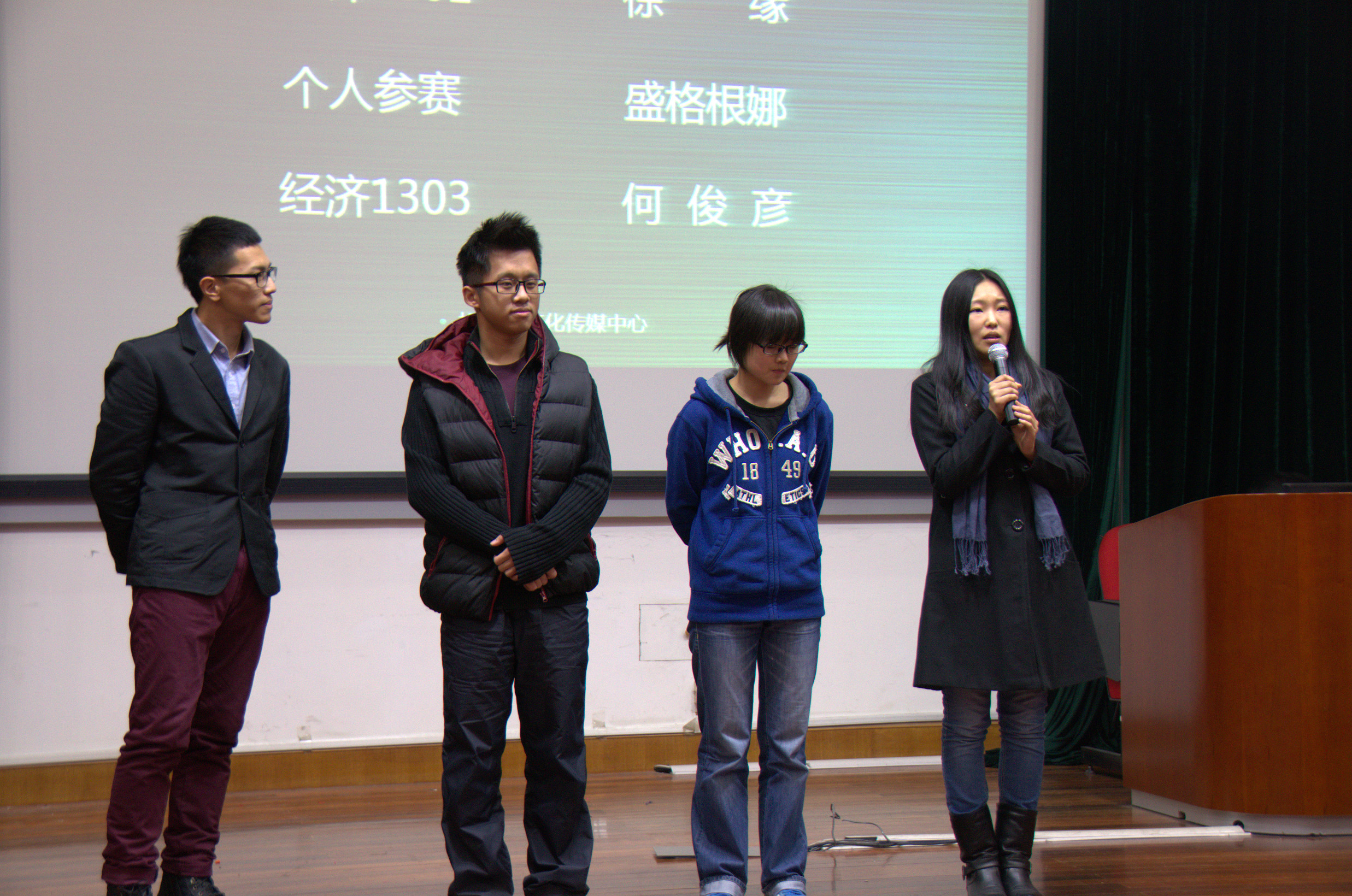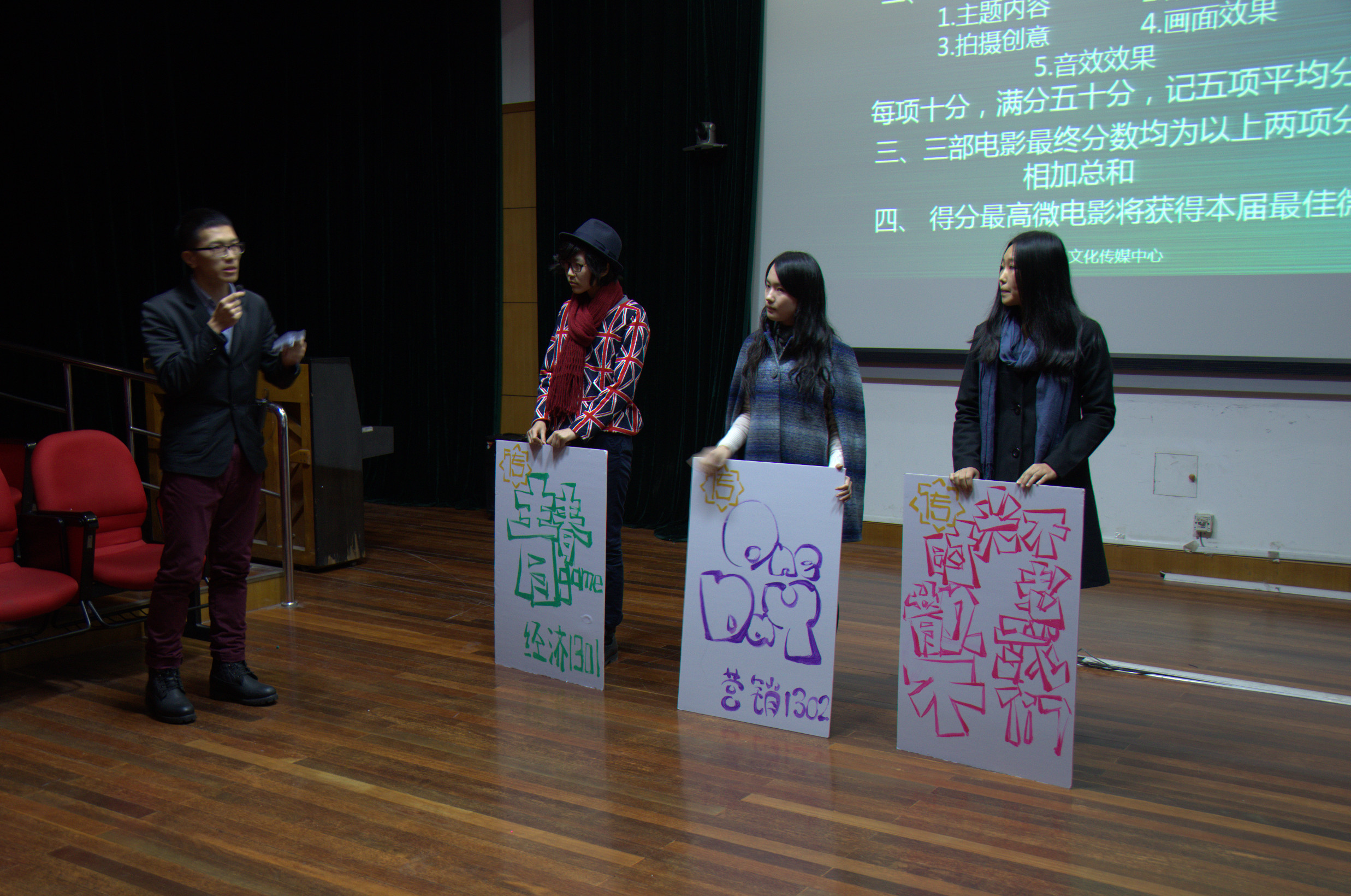2013年12月10日下午三时,第二届旭日风微电影大赛之“行走中的青春”颁奖典礼在91直播 延安路校区第四教学楼305室隆重举行。出席本次活动的老师有91直播 旭日风文化传媒中心指导老师屈喆老师,13级辅导员王佩老师和纪静老师。91直播 大三学生臧元任本次活动的主持人。各班级的团支书、班长以及微电影相关拍摄人员亲临现场,共同见证最佳微电影的诞生。 第二届旭日风微电影大赛由旭日风文化传媒中心举办,从前期筹划到大赛颁奖典礼成功举行历时两个月,主要针对2013届91直播 学生收集作品,活动为探索当代大学生对于青春的理解,通过班级活动的形式促进班级团结。91直播 13级所有班级均积极参与到此次活动中,各班组织班级同学进行了用心的拍摄制作,另征集到个人参赛作品一份。本次颁奖典礼采用红毯亮相、学生签到、现场表演、礼仪颁奖、观众离席投票等规范颁奖典礼形式,体现一种专业、专注、高端的颁奖典礼形式。