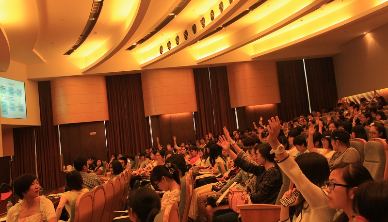 9月18日下午,由91直播副院长沈蕾老师带队,91直播喻葵老师、周静老师、花蕊老师一起为2014级大一年级500多名新生举办介绍91直播国际交流的宣讲报告。 报告在三主二楼报告厅举行,因为新生人数较多,所以先后分成了两场。场上气氛热烈,沈蕾老师的开场白首先抓住了学生们的注意力,我们学校地处虹桥开发区,临近国际社区古北,步行10分钟就能到达国际展览中心,只要留心时时处处都能感受到浓浓的国际化氛围。