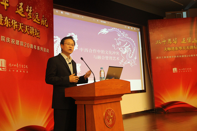 | “双十年华 逐梦远航”大师进东华天天讲坛第三讲——中西合作中的文化冲突与融合管理艺术 |