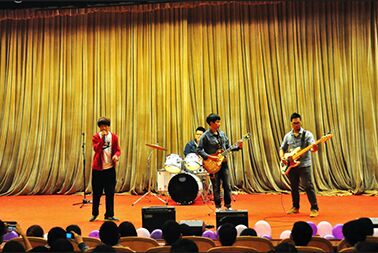 晚会中,管院的研究生们也带来了别具特色的 《小苹果》,这首最近风靡一时的歌曲再次high翻全场。大一新生组成的乐队带来的歌曲《iridescent》、吉他社乐队带来的《自由》,一系列歌曲节目可谓是精彩纷呈。舞蹈串烧、管科的扇子舞为观众们带来了不一样的视觉享受。作为今晚唯一一个语言类节目,脱口秀《东华将我崴了脚》着实赚足了人气,令人捧腹大笑。最后,由步知火舞社团组成的舞蹈团队为我们呈上了一场视觉盛宴,炫酷的舞蹈,沸腾的音乐,现场气氛达到顶点。