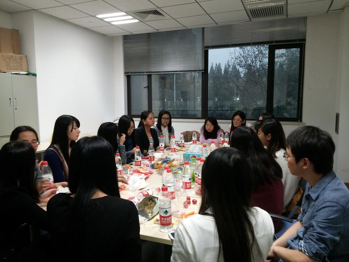 时间过的很快,活动在轻松欢乐的气氛中持续到5点10分就结束了,双方负责人互赠纪念品,最后在对方主席的主持下,大家在室内留了合影。 大约5点20分,对方欢送我校研会成员离开了复旦管院,为期半天的访问活动顺利落幕。