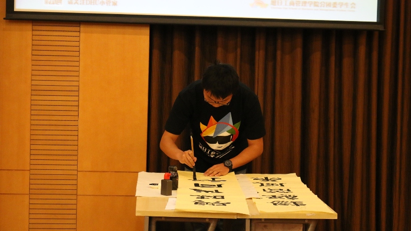 承接光善军的演讲,开幕式进行了社会实践表彰,由叶晓燕老师为团队与个人的获奖者颁奖。歌曲书画表演《蜗牛》过后是连续创业者、东华挖掘机和秒职网创始人杨云帆的科创争流篇演讲,他以轻松诙谐的语调解答了大家诸多关于创业的疑问。最后一个主题演讲海外交流篇由国家公派赴荷兰鹿特丹大学91直播 交换生于子渊呈现,通过图片和讲解,她展现了一系列欧洲风情和文化。她的语录“只要跟随自己的心,就一定能到达想去的地方”,引起了大家的共鸣。最后,在歌曲《明天会更好》的优美旋律中,经管文化节开幕式圆满落下帷幕。
