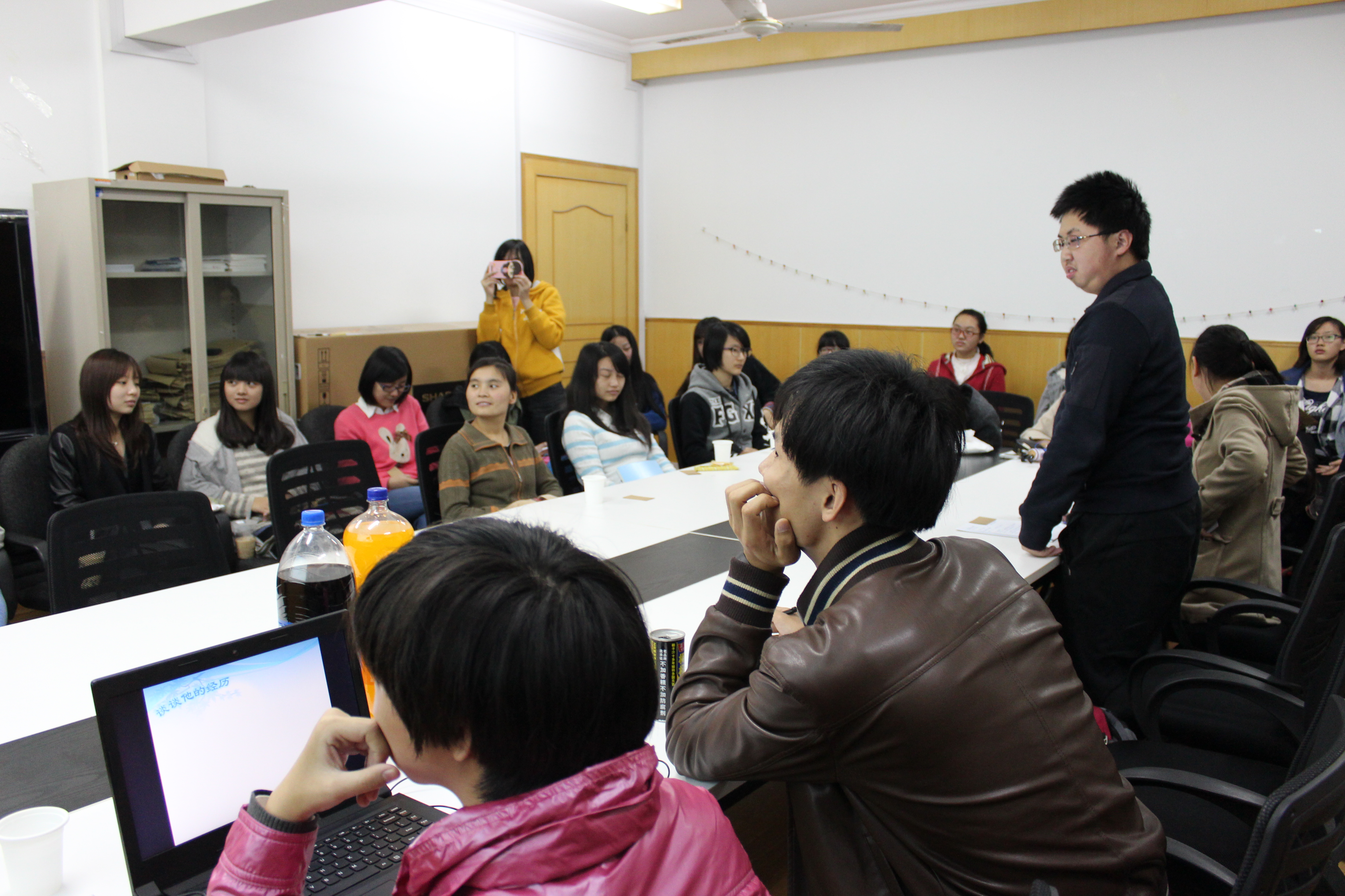 本次班会在第一板块——“看看您的曾经“不仅仅通过主持人的介绍以使同学了解管院,更凭借一种更有创意的模式——游戏来达到这一目的。在游戏期间,被抽到的同学上台通过朗诵,对口型以及唱歌等多种方式以了解管院20年9位风云人物。这一极具创新力的方式不仅活跃了班会的气氛更使我班进一步融合。在第二板块——“说说我的祝福”,通过播放由班级团支书熊丹摄制,全班同学参与录制的VCR来送上我班同学对即将弱冠之年的管院衷心祝愿,使人不仅有一丝温馨更有一丝感动。在第三板块——“谈谈他的经历”,我们邀请到了14届旅管毕业生、现管硕145班的赵天水学长以及13级旅管班长陈直峰同学来分享大学心得。 赵天水学长先向我们介绍了91直播 丰富多彩的学生部门活动例如志管、阳光服务队、旭日风传媒等并希望我们可以通过部门以锻炼能力、开阔眼界与结识好友。此外,他也与我们分享对旅游管理专业的理解,希望我们可以通过阅读等多种方式开阔眼界、拓展接触面为未来就业打下基础。而陈直峰学长则是更侧重希望我们同学在大一可以在学习上可以有所成绩,并且也可以加入一个及以上的学生组织,以开拓视野,提升自己的能力,扩大自己的人脉。