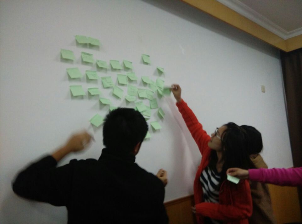 之后张裕佳同学与汪伟胜同学一同演唱了五月天的《我不愿让你一个人》,掌声雷动。 最后,同学们用便利贴写下了对管院的祝福与未来的梦想,一同贴在了教室的后墙,组成了一个大大的爱心。并在老师的提议下留下了第一次全体正式合影。